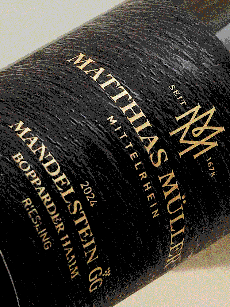 Mandelstein er topvinen fra Matthias Muller. Den uhyre stejle mark med den helt unikke syd-sydøstvendte beliggenhed, er opkaldt efter den særlige jordbund med forvitret kiselholdig skifer, som nærmest er formet som mandler. Markens eksponering giver et intenst sollys, og jordbunden giver vinstokkene mulighed for ekstremt dybe rodsystemer, som sikrer en konstant naturlig vandforsyning.